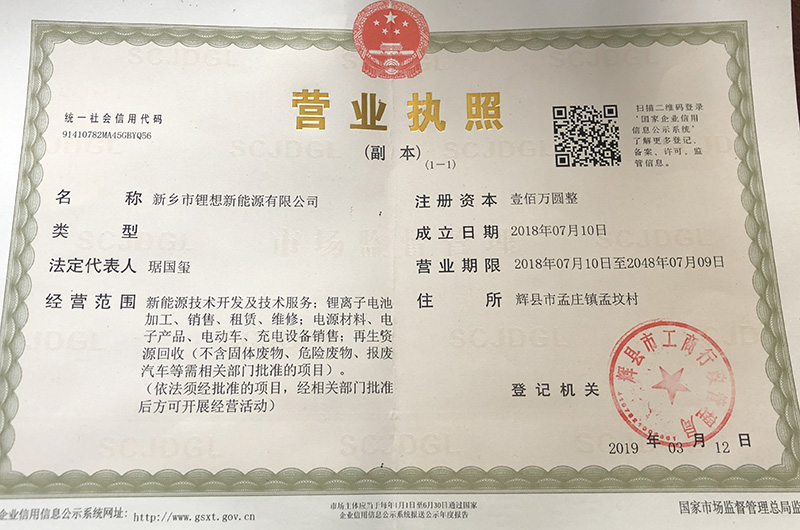 新鄉(xiāng)市鋰想新能源有限公司 - 專注于鋰電池的回收及銷售業(yè)務(wù)!